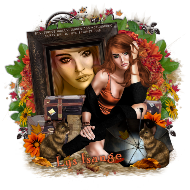 Resize element 37 to 20%, paste on the lower left below the cat, duplicate, mirror,