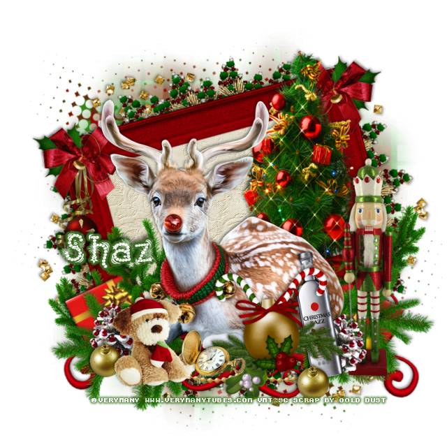 Resize the gold ornament, paste by the bear, duplicate a couple of times, paste
