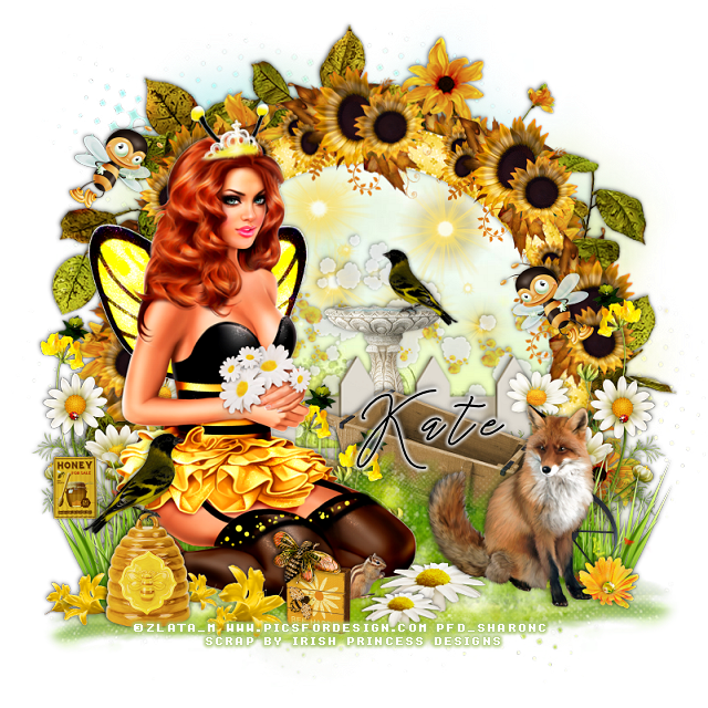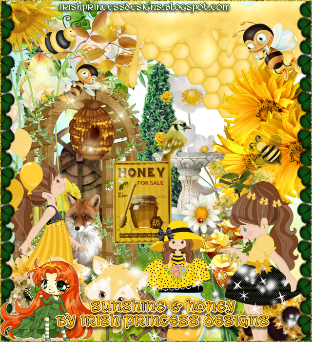 Resize element 18 to 35%, paste at the lower left below the honey pot.