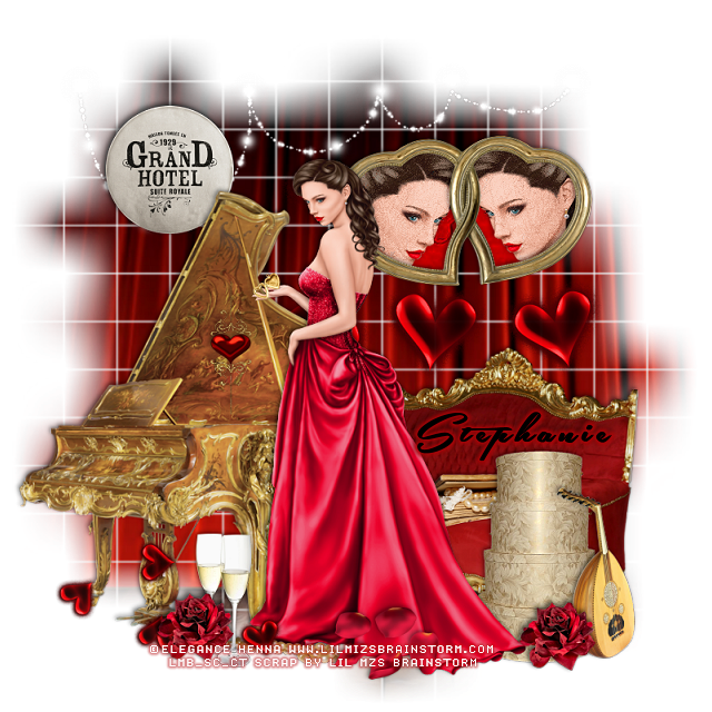 Resize element 87 to 15%, paste at the bottom by the champagne glasses, duplicate,
