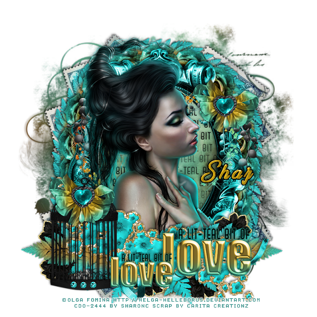 Paste wordart 1 at the bottom, give it a teal gradient glow using EyeCandy 4000,