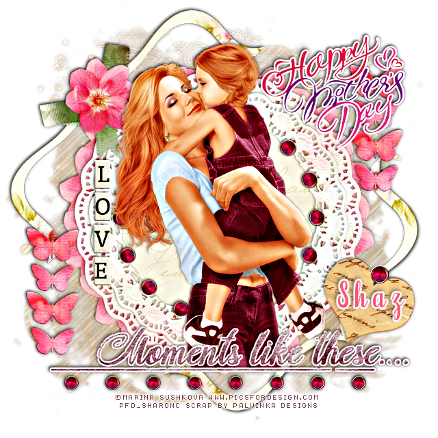 Paste the resized button on the heart, duplicate, move to the bottom below the wordart,