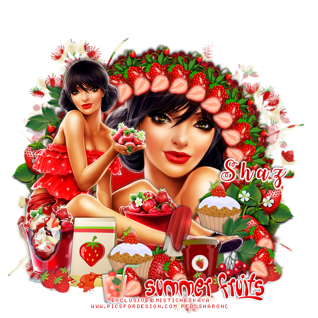 Duplicate the sliced strawberry, move above the wordart and to the left a little,