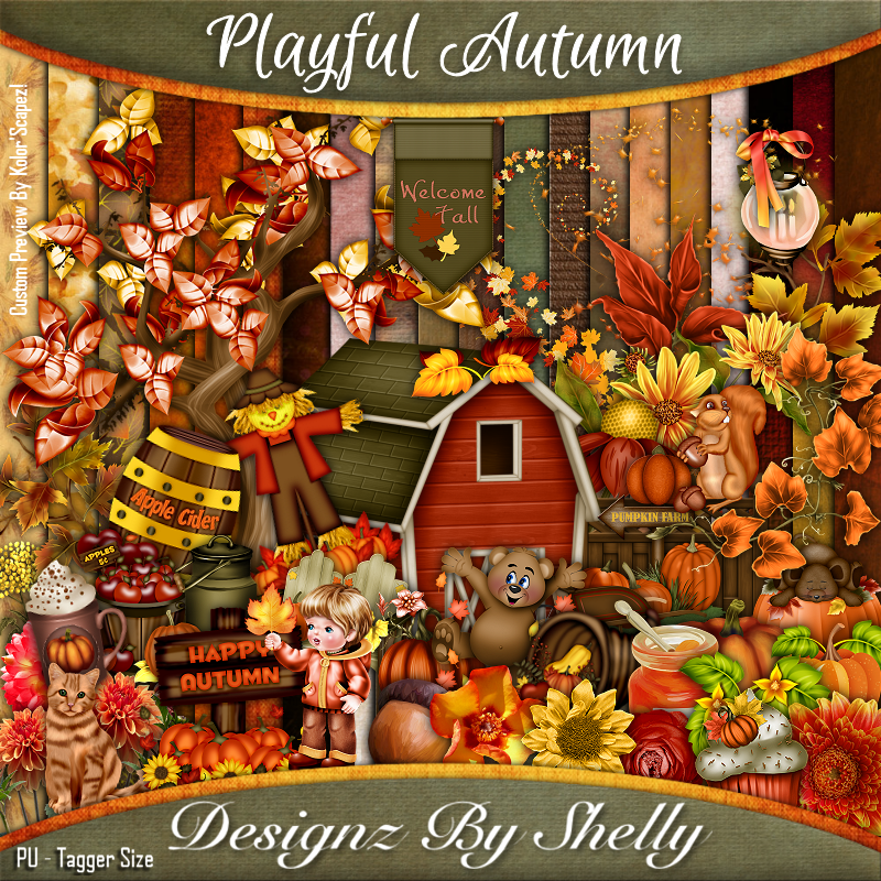 Resize element 67 to 15%, paste at the lower left above the pumpkins.