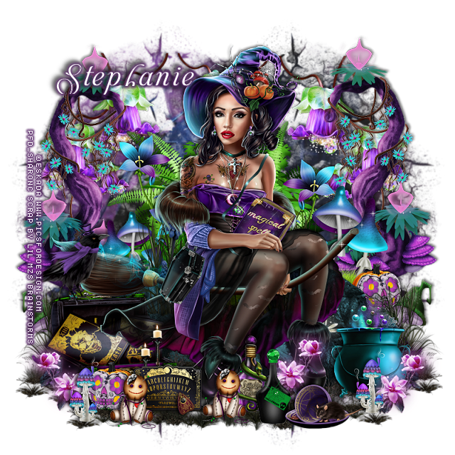 Resize element 27 to 15%, paste at the lower left below the doll,