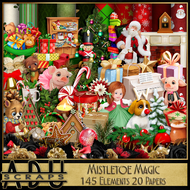 Resize element 50 to 30%, paste at the lower left by the mistletoe.