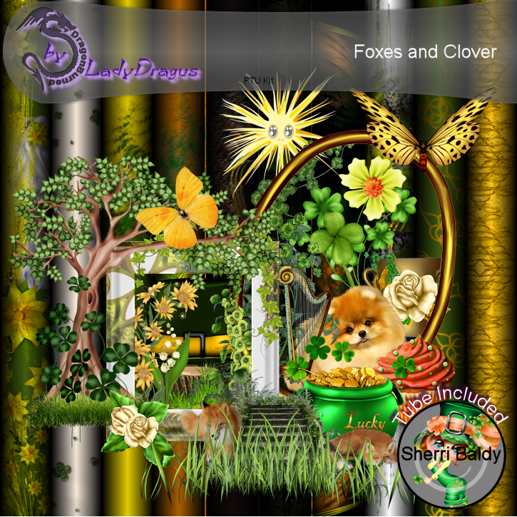 I am using the awesome kit "Foxes and Clover" by Lady Dragus