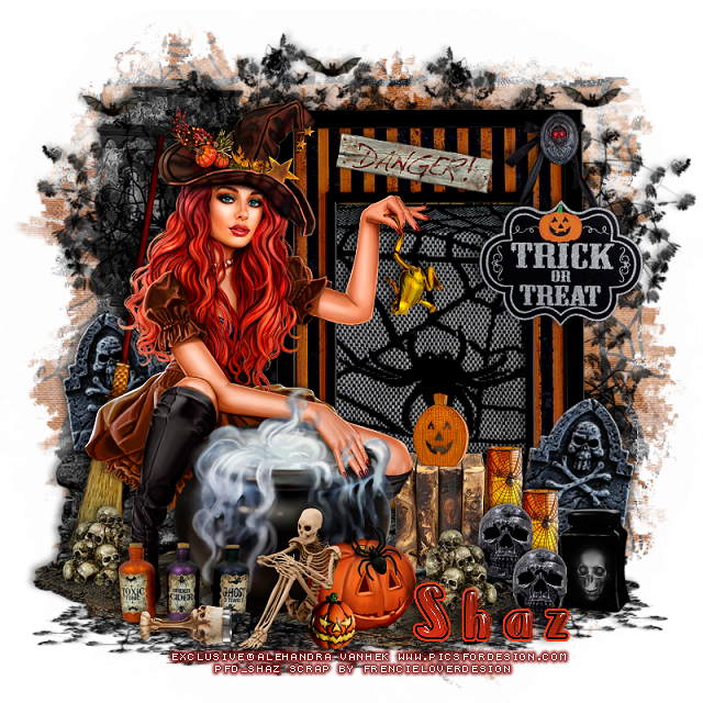 Resize element 45 to 35%, mirror, paste by the pumpkin.