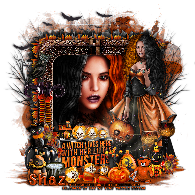 Resize element 68 to 25%, paste below the pumpkin by the bottle.