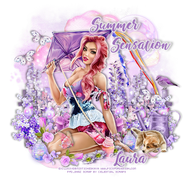 Resize element 17 to 60%, paste below the purple flowers on one side, duplicate, mirror.