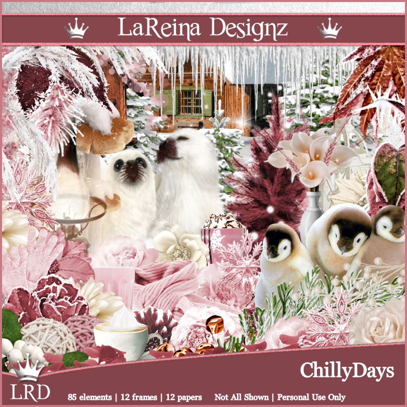Beautiful kit with pinks, burgundy and more to make your tags for winter.
