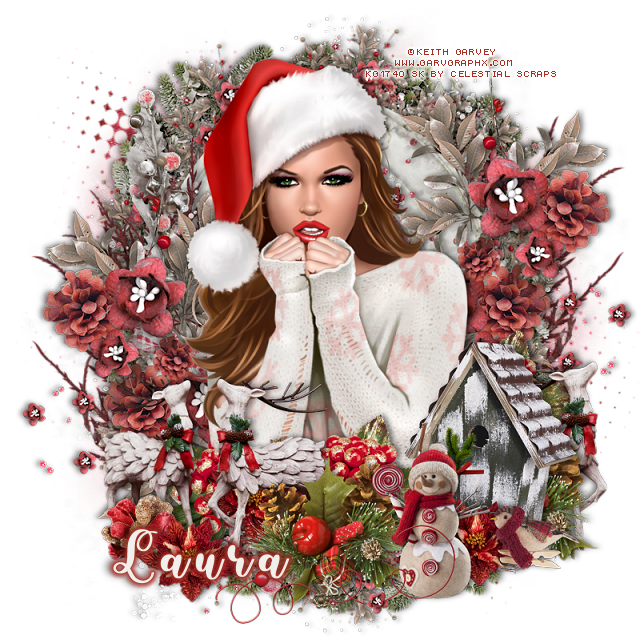 Resize element 15 to 25%, paste behind the snowman, duplicate, move by the deer and