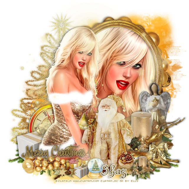 Resize element 73 to 10%, paste at the bottom by the Santa, duplicate, move over.