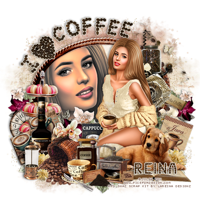 Resize element 20 to 20%, paste on the saucer with the cup.