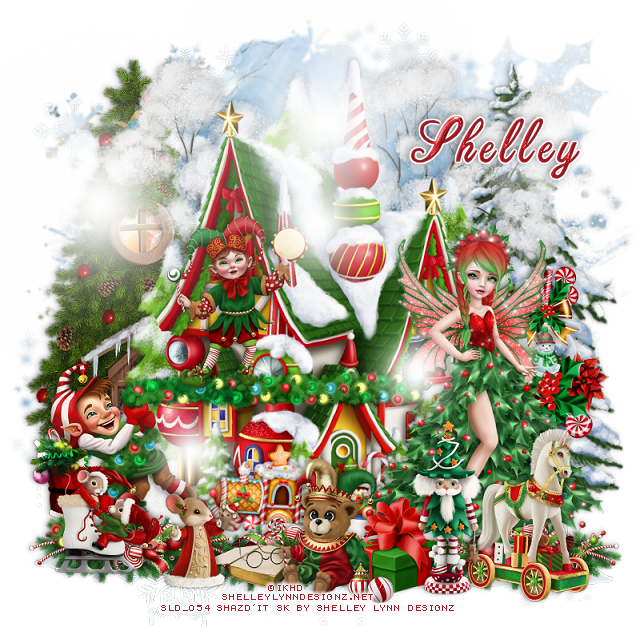 Resize element 20 to 15%, paste at the lower left behind the elf.