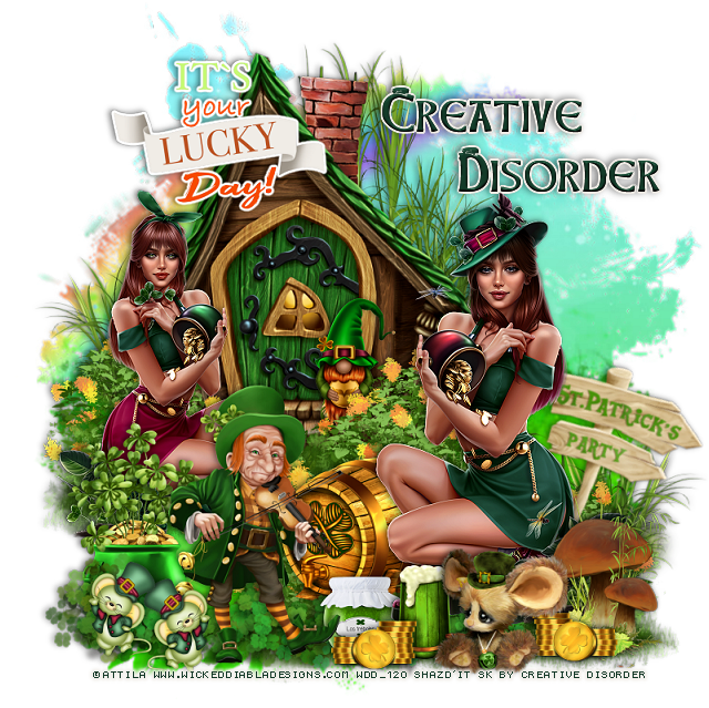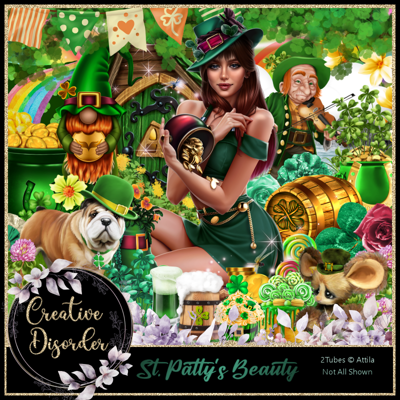 Resize element 70 to 25%, paste on the lower left below the clover border.