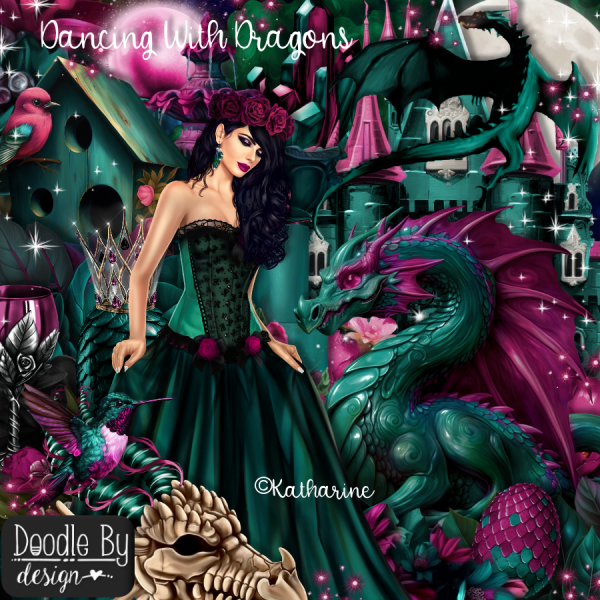 Resize element 51 to 25%, paste at the bottom above the dragon, duplicate, mirror,