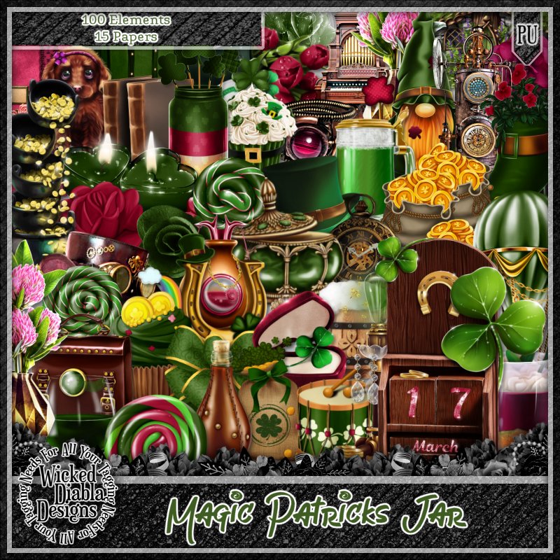Resize element 8 to 15%, paste on the right below the pot of gold.