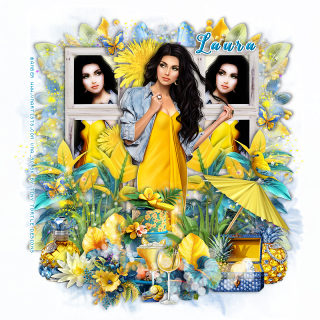 Resize element 23 to 40%, paste on the right of the tube behind the pineapple,