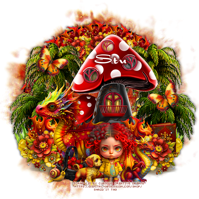 Resize element 37 larger to 110%, paste behind the mushroom on the left, duplicate,