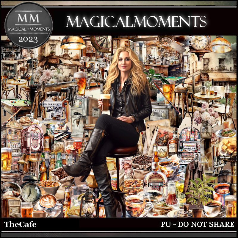 Resize element 63 to 35%, paste at the top on the coffee building.