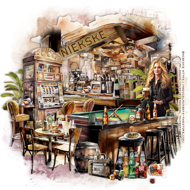Resize element 4 to 50%, paste on the left above the pool table.