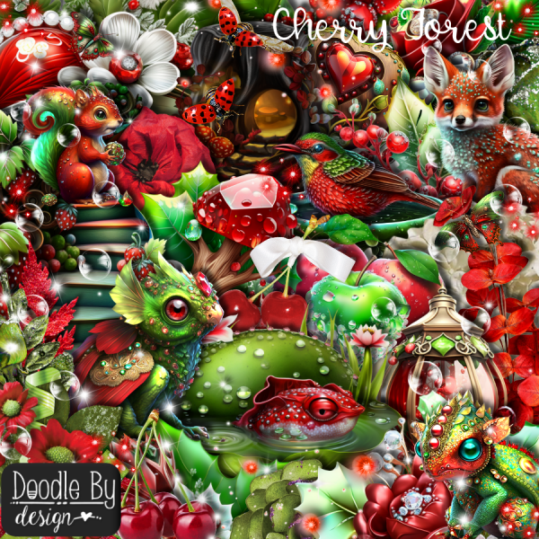Resize element 86 to 40%, paste on the left above the apples, duplicate, mirror,