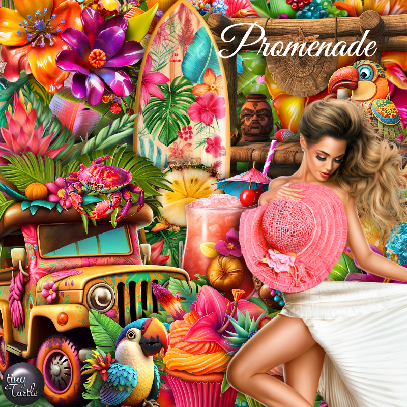 Resize element 33 to 15%, paste at the top below the palm tree.