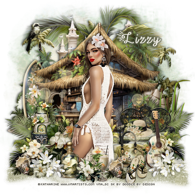 Resize element 8 to 15%, paste at the bottom by the flip flops, duplicate,