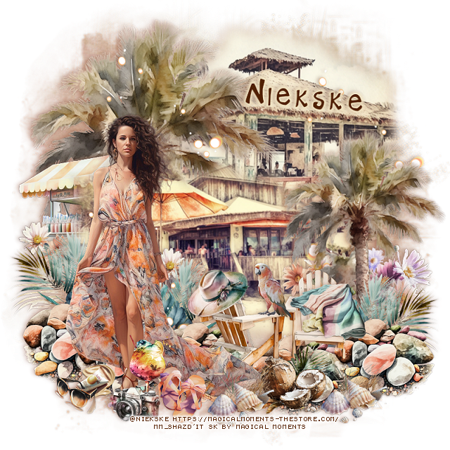 Resize element 50 to 25%, paste on the right below the palm tree.