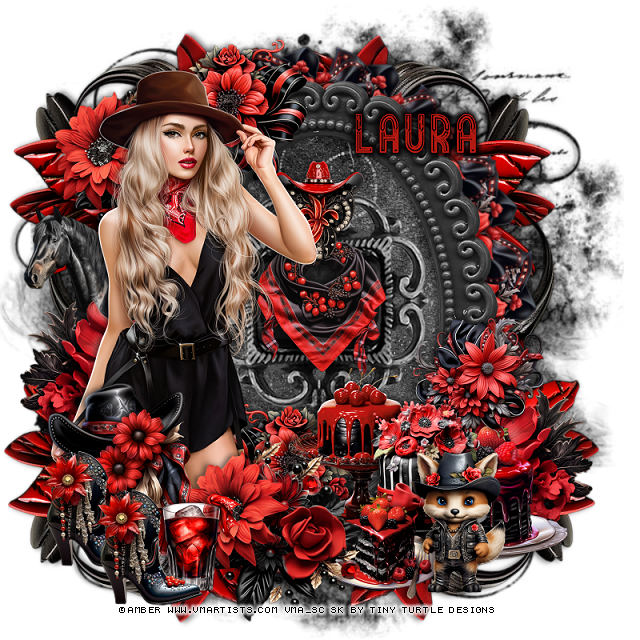 Resize element 103 to 30%, paste at the bottom left above the flowers.