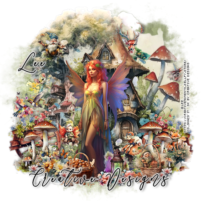 Resize element 7 to 35%, paste behind the mushrooms to the left.