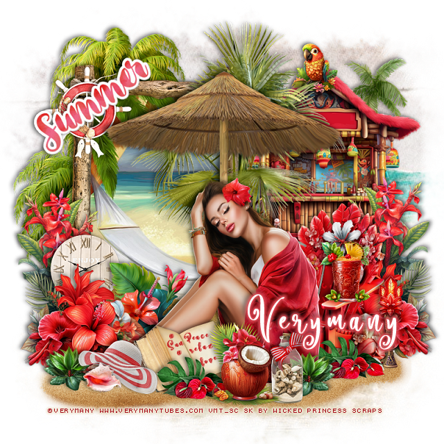 Resize umbrella 1 to 65%, paste above the palm tree behind the tube.