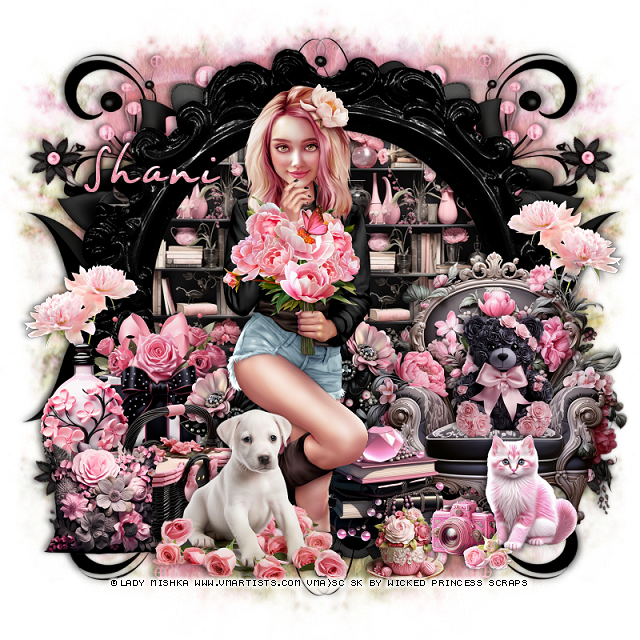 Resize flower 23 to 30%, paste on the left behind the bottle, duplicate, mirror.