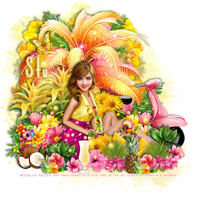 Resize element 57 to 20%, paste at the bottom below the pineapple, duplicate,