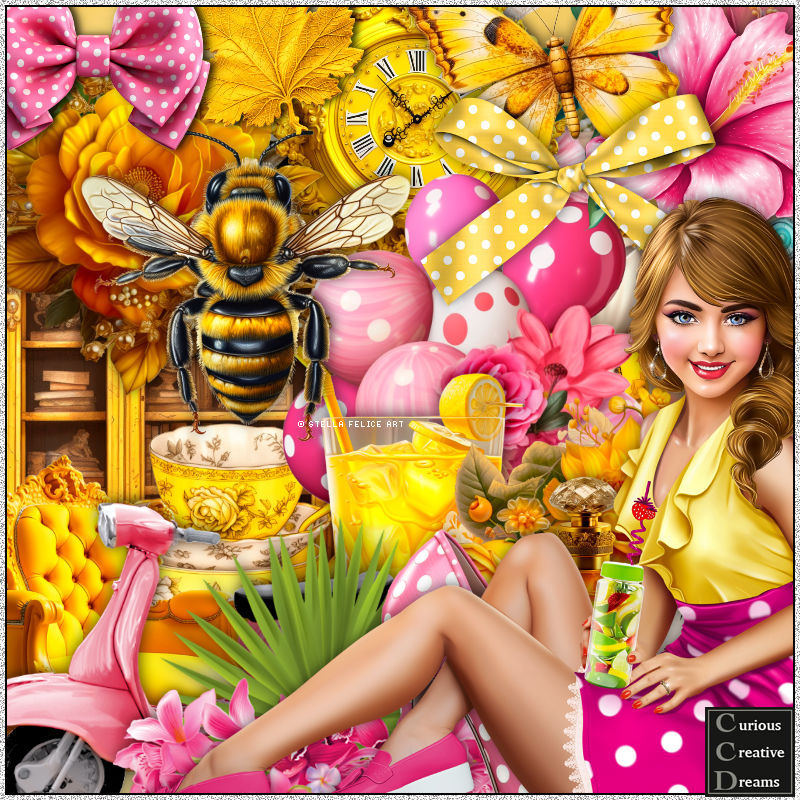 Resize element 58 to 30%, paste on the left below the pink flowers, duplicate,