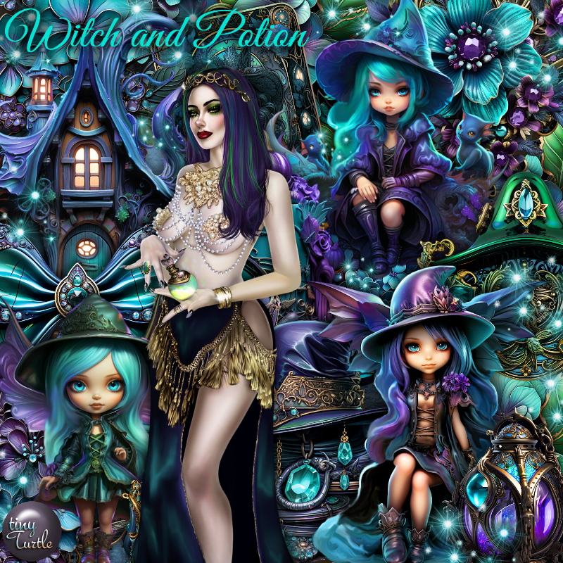 Resize element 99 to 20%, paste at the bottom left behind the little witch.