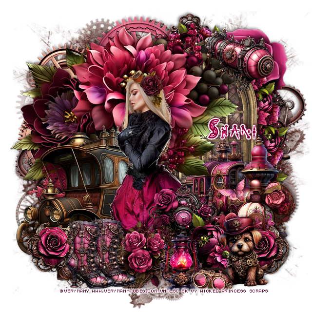 Resize your tube to 40%, paste on the right above the frames, pull the flowers