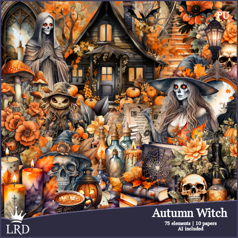 Resize element 6 to 25%, paste above the witch at the bottom.