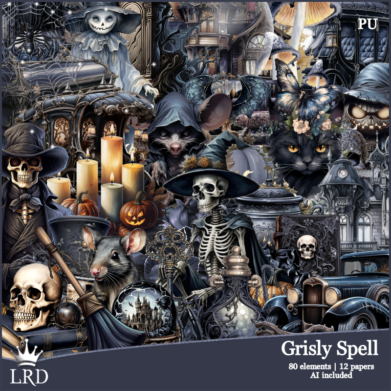 Resize element 46 to 25%, mirror, paste on the tombstone on the left,