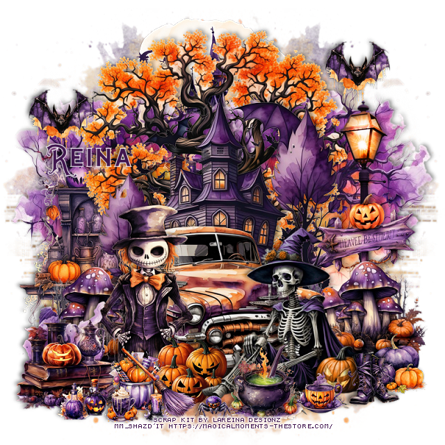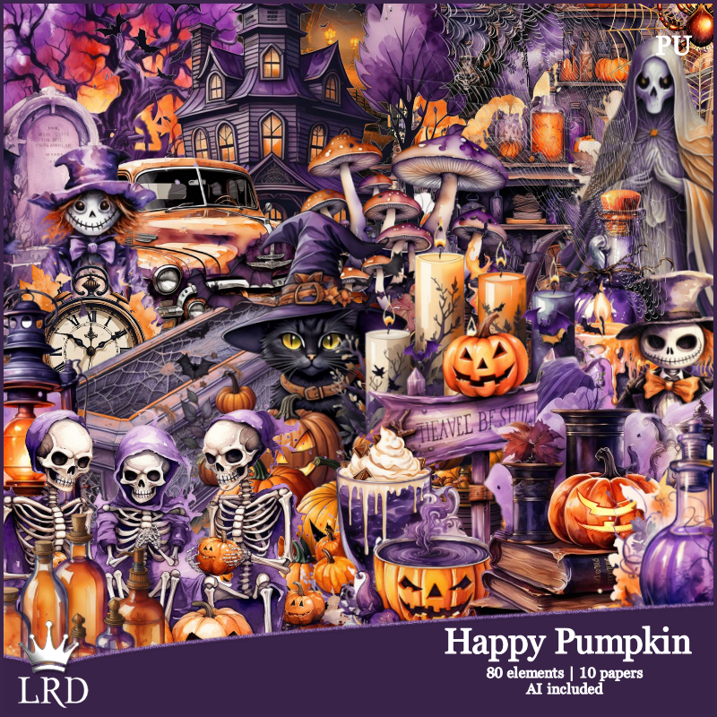 Resize element 33 to 30%, paste at the bottom by the pumpkins.