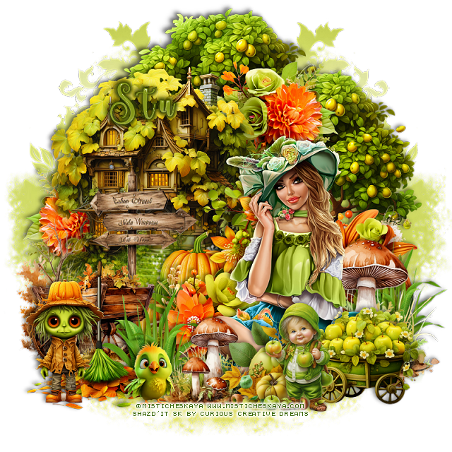Resize element 85 to 50%, paste on the left below the pumpkins.