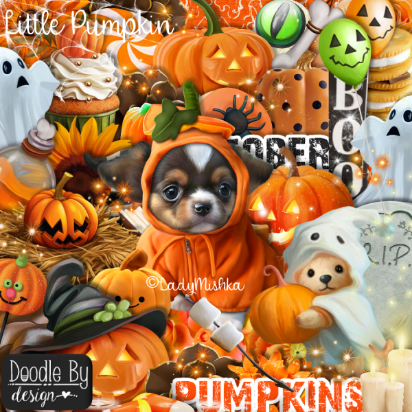 Resize element 32 to 40%, paste on the right below the mouse pumpkin,