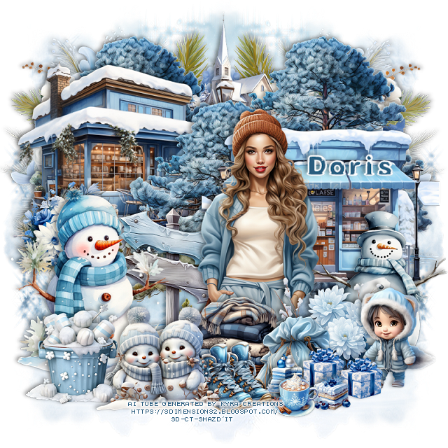 Resize element 54 to 50%, paste behind the tube and snowman.