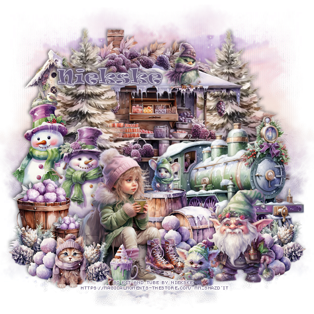 Resize element 46 to 23%, mirror, paste on the left above the snowmen.