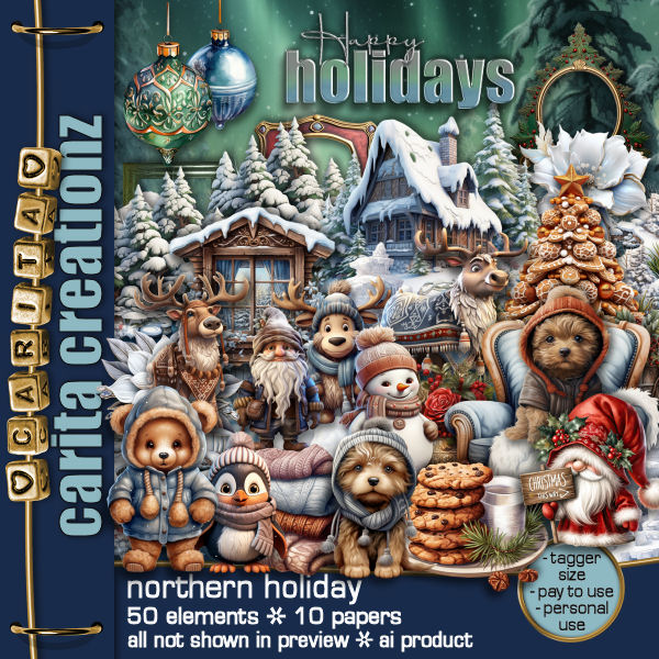 Resize element 8 to 20%, paste behind the Santa, erase some of the