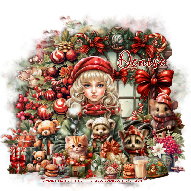 Resize element 21 to 20%, paste above the tube behind the gifts.
