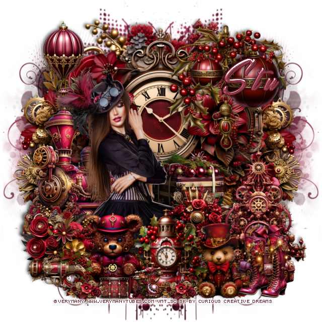 Resize element 117 to 35%, paste on the right behind the frame, duplicate, mirror.