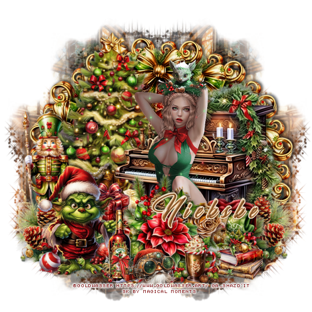 Resize element 19 to 20%, paste behind the grinch on the left, duplicate,