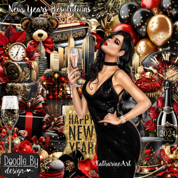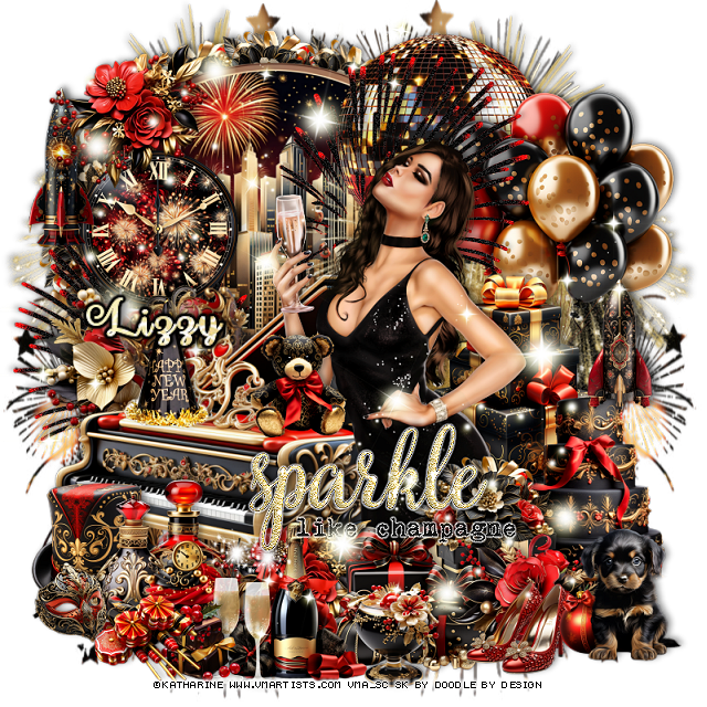 Resize 37 and 65 to 40%, paste on the right, the gifts behind the piano,
